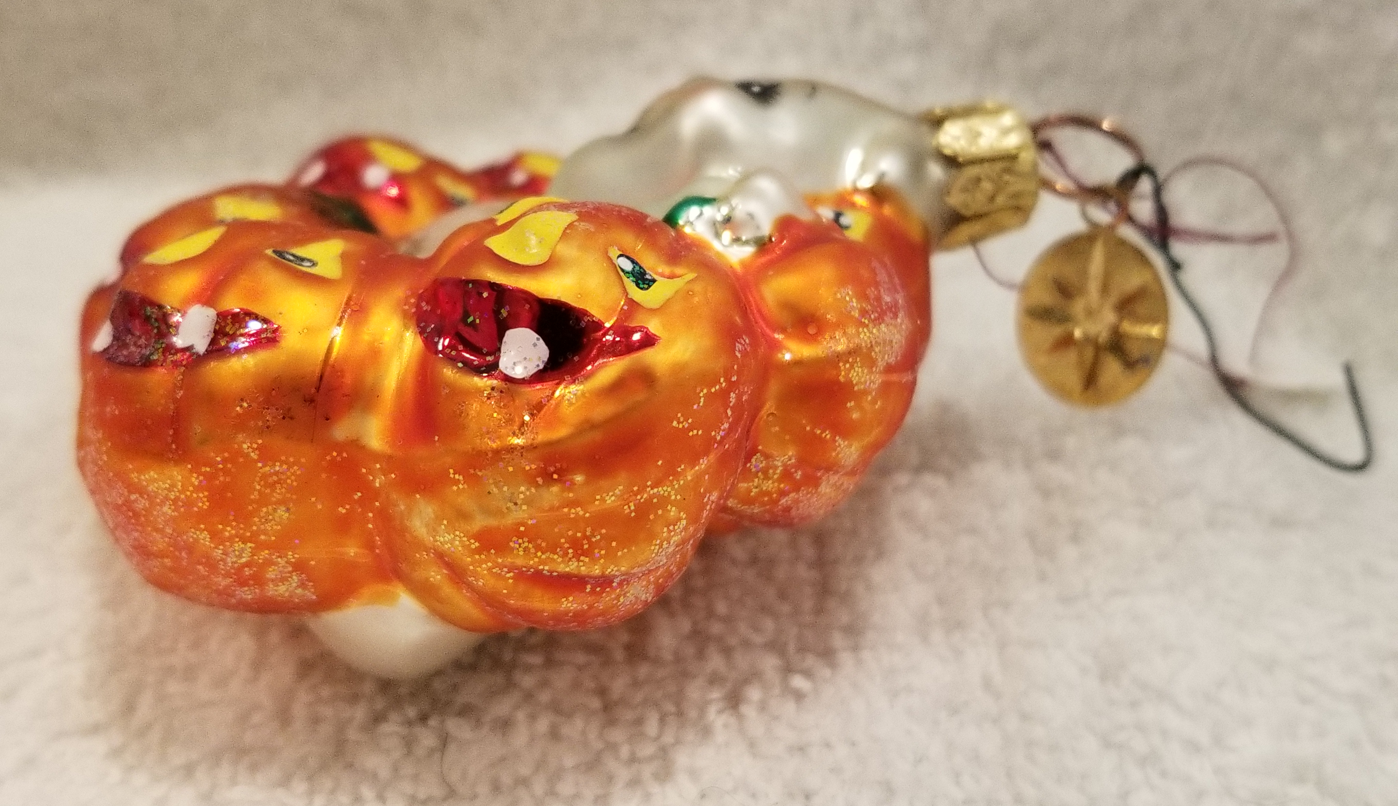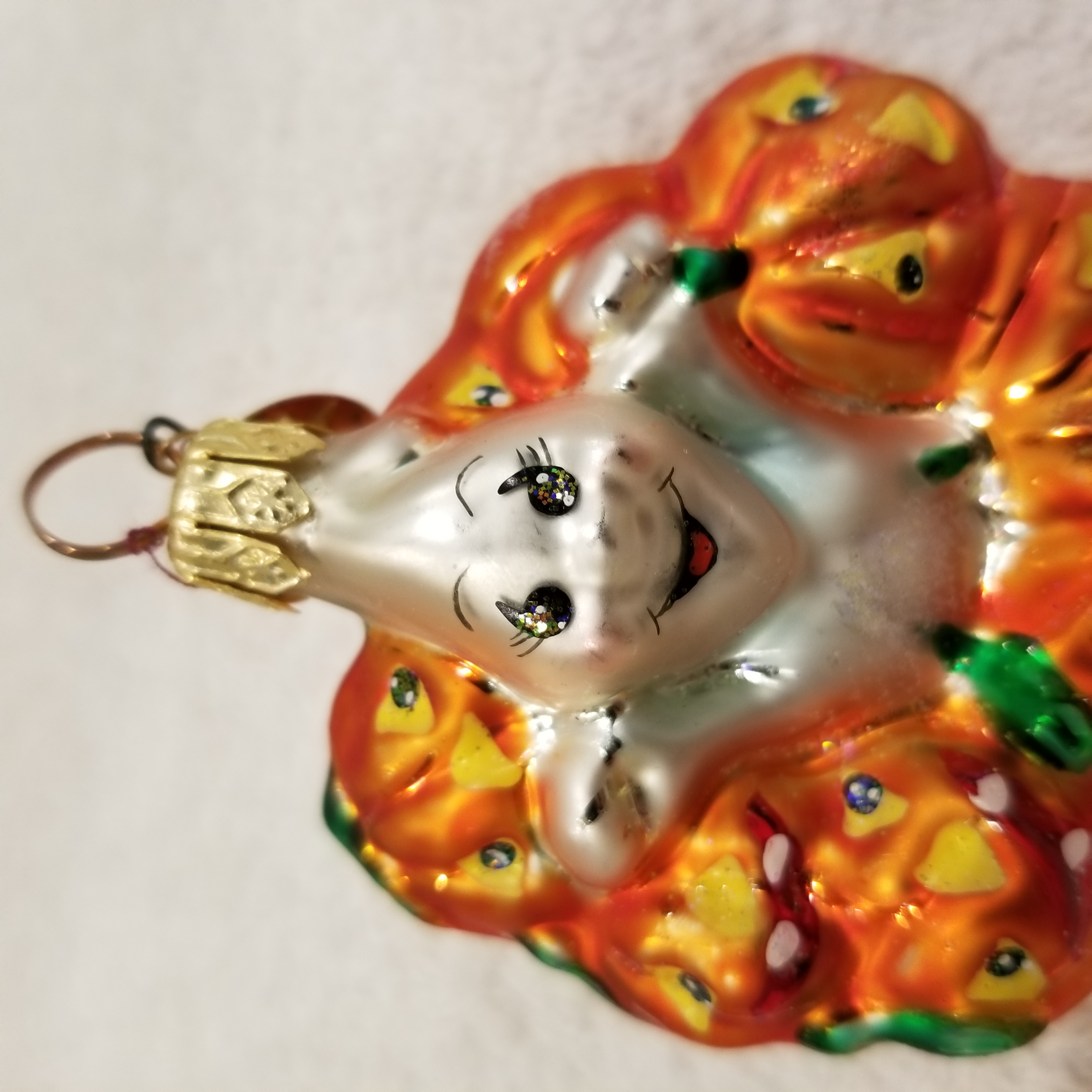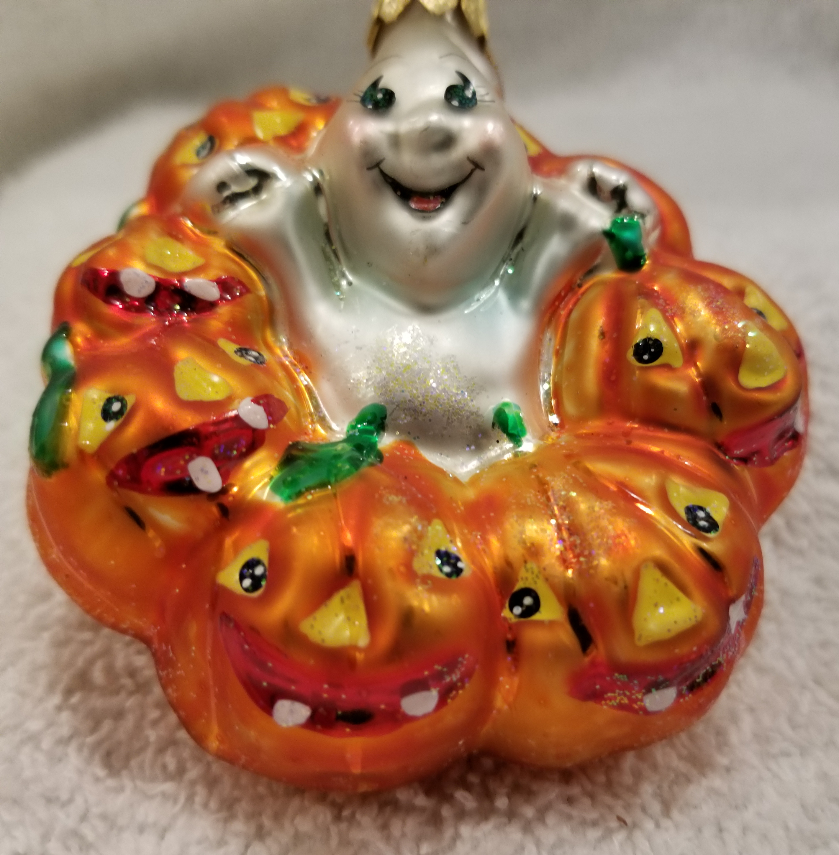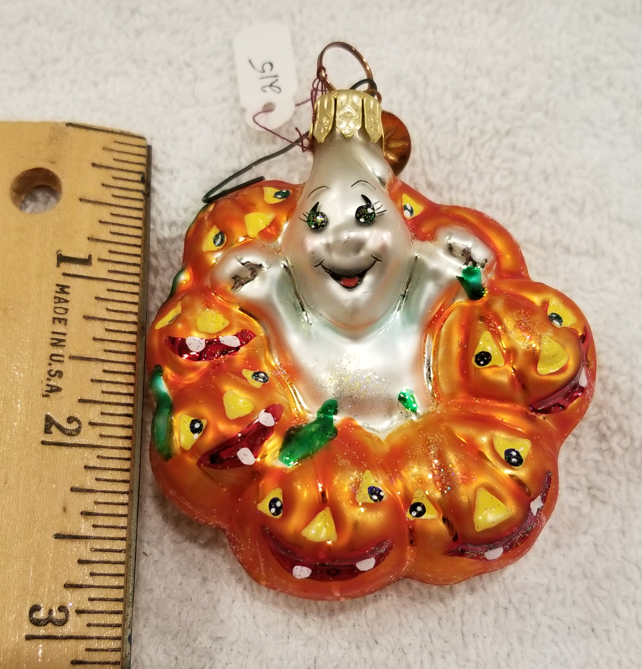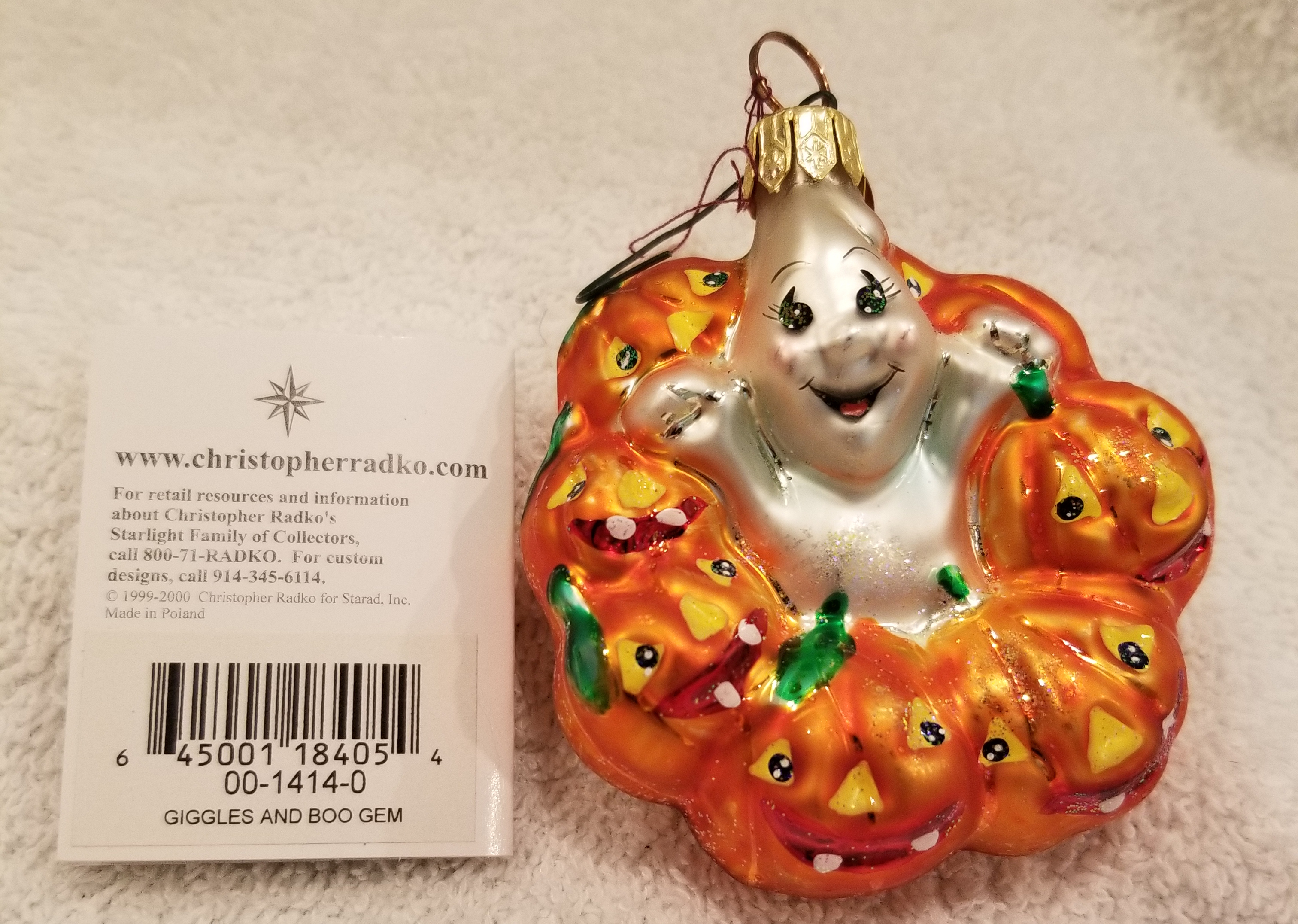 | This week I'm listing Halloween ornaments I just received! This one is Giggles and Boo Gem, Radko number 00-1414-0. This is the smaller 3" gem version of the a larger 4" version I listed earlier this week. I will include a picture of both for size reference. They are otherwise identical to my eyes. The original metal charm and paper tag are still attached. I'm asking only $25 plus shipping via Pirate Ship however you prefer. Please ask if there are any questions and thanks for taking a look! |