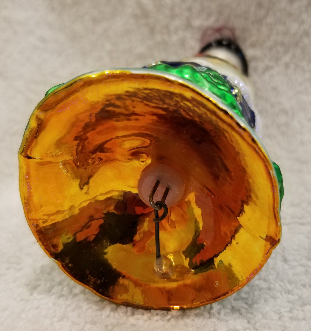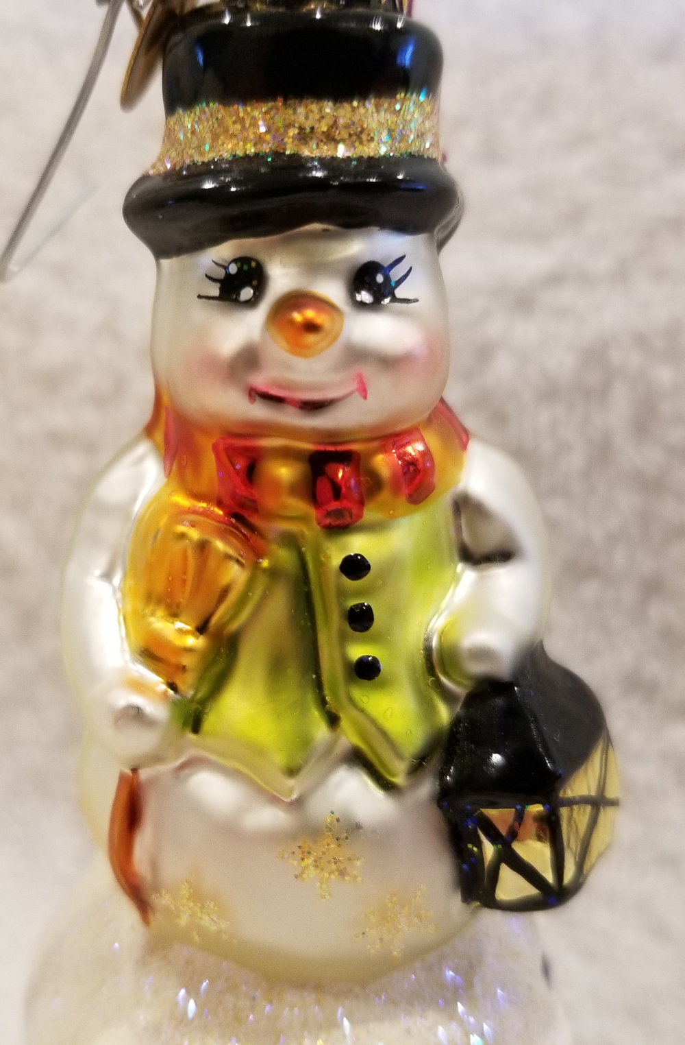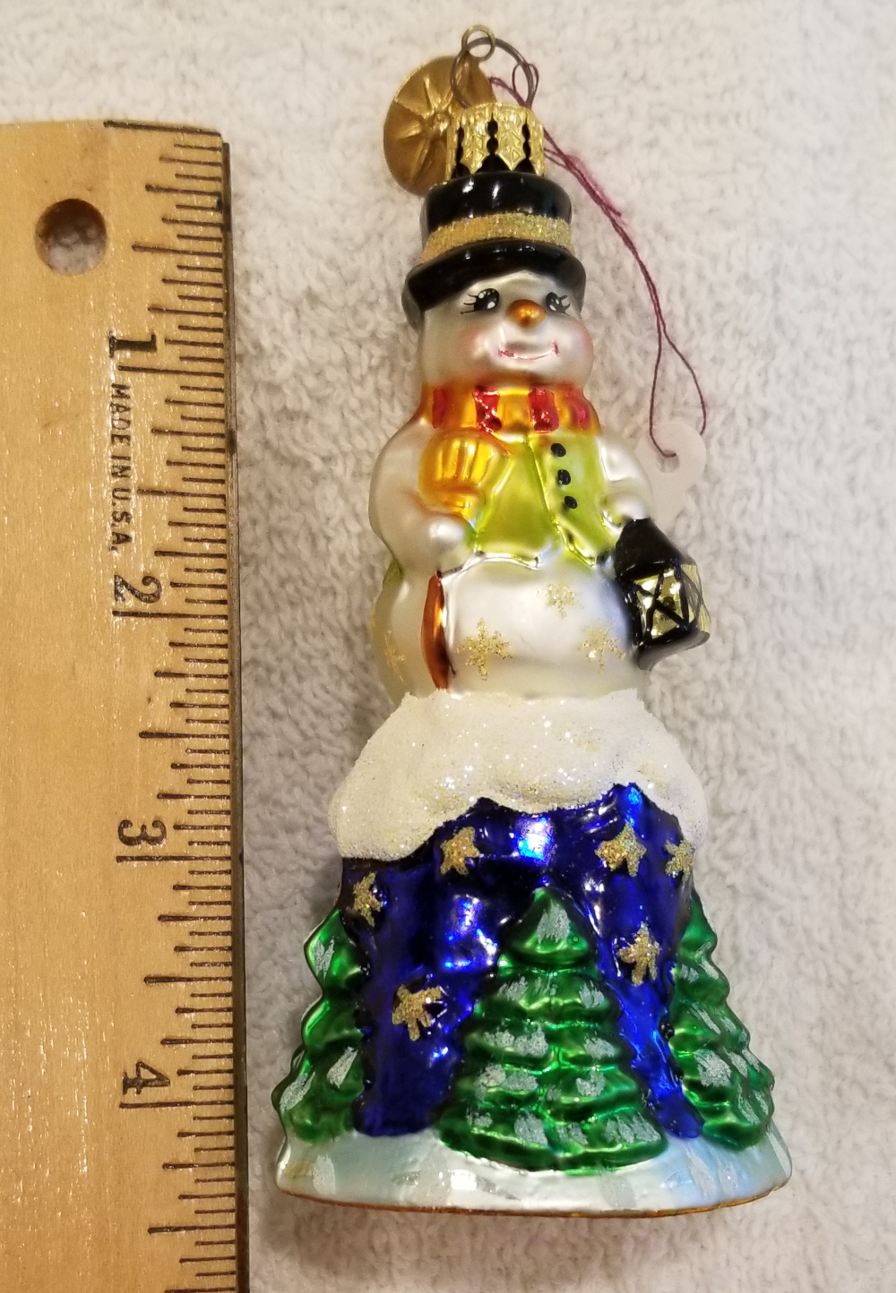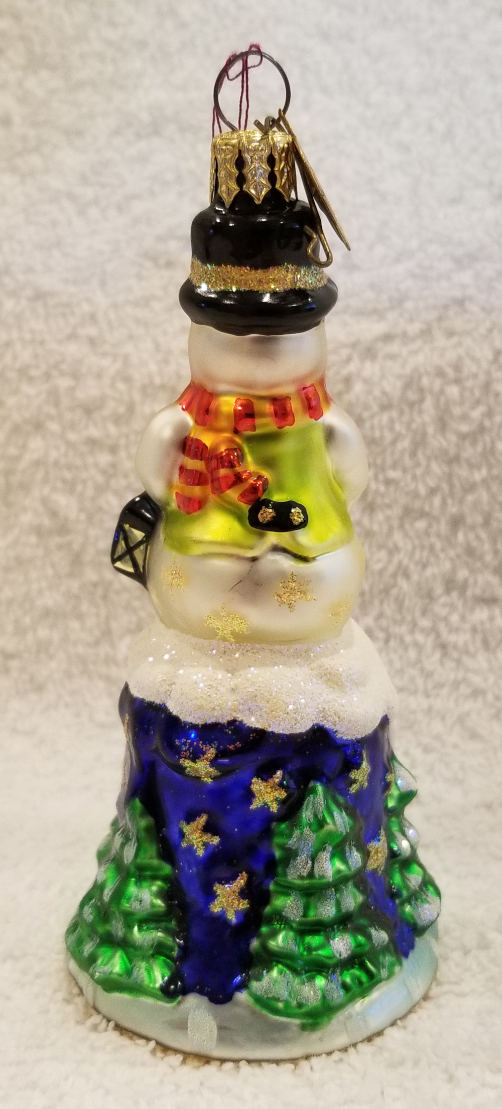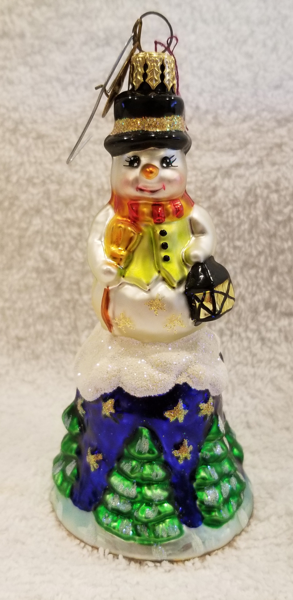 | Today I'm listing another awesome bell. This is Petite Snow Bell, Radko number 01-0775-0. This bell features a snowman carrying a lantern and broom perched on top of a tree and snow covered bell. The original metal charm is attached. I'm asking $40 plus shipping via Pirate Ship. |