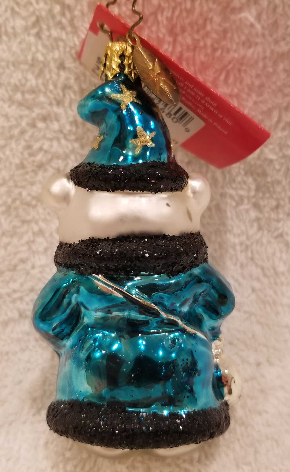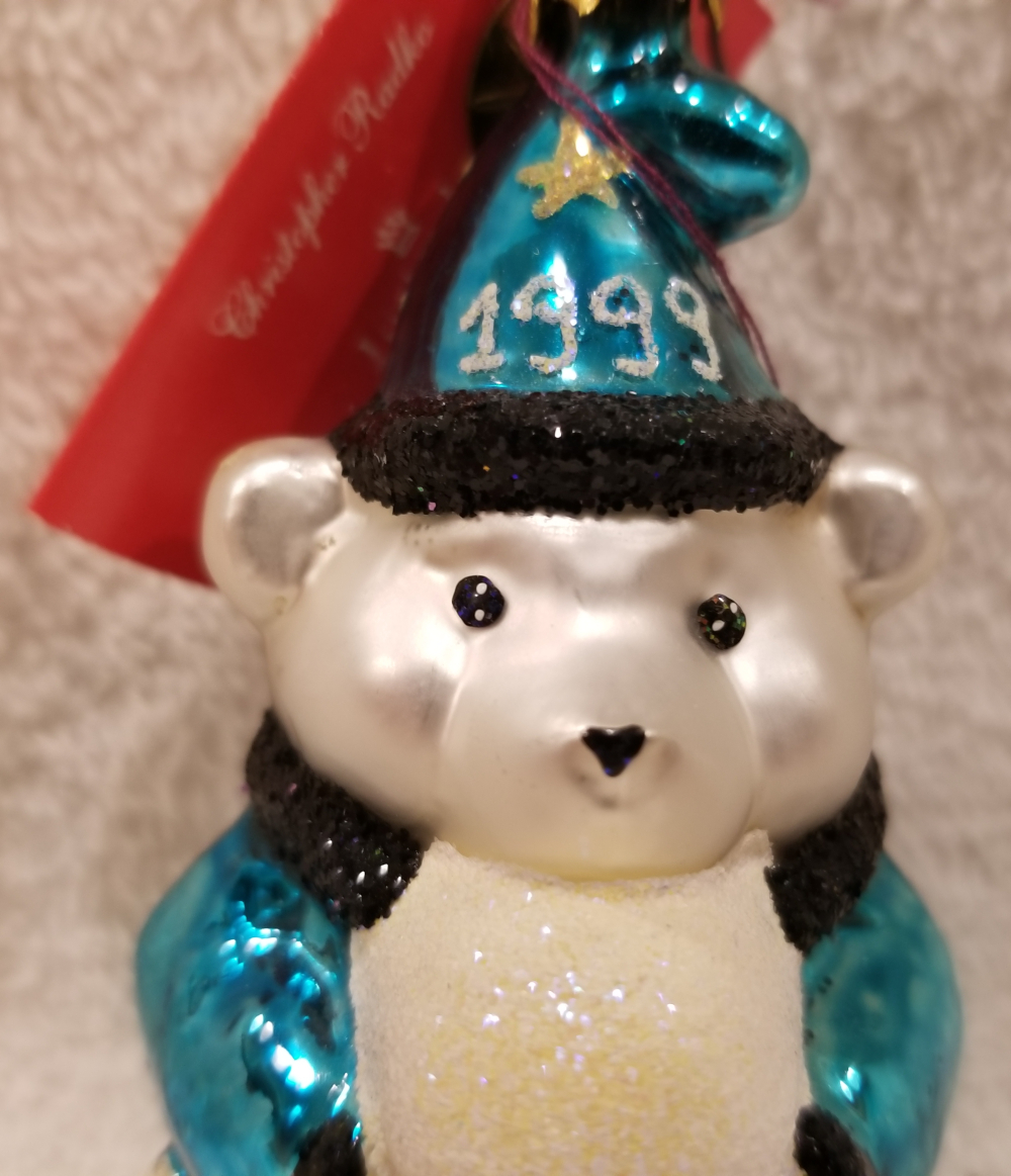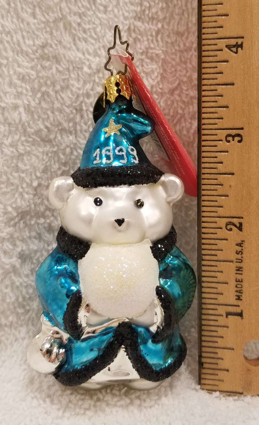 | Today I'm listing another cute Santa Bear. This is Santa Bear Gem 1999, "Wizard Magic". Radko number 3010698. This year is a polar bear wizard in beautiful blue robes carrying a white orb. The original metal charm and the paper tag are included. I'm asking $30 plus shipping via Pirate Ship. |