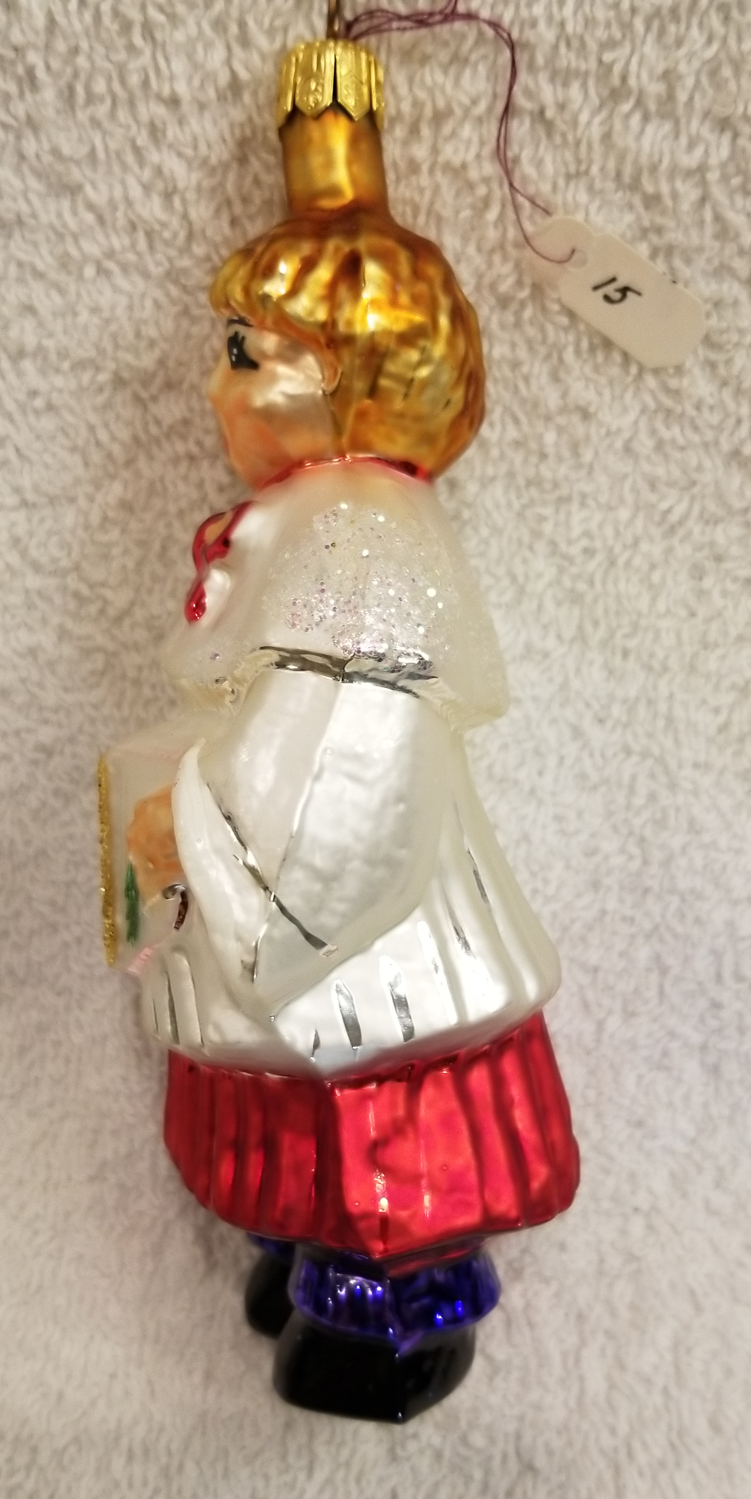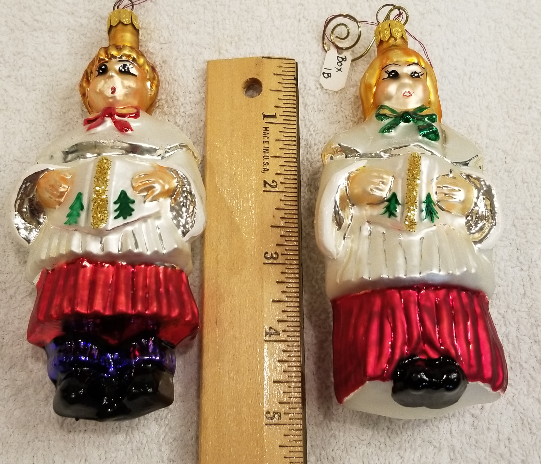 | Today I'm listing another cute pair. This is Sing Me Now, Radko number 96-176-0. I'm listing the boy and the girl together. They are both approx. 5" tall and seem like church choir members at a Christmas show. I have no idea why they are so expensive on ebay, but I'm listing the pair together at $50 plus shipping via Pirate Ship however you prefer. Please ask if there are any questions and thanks for taking a look! |