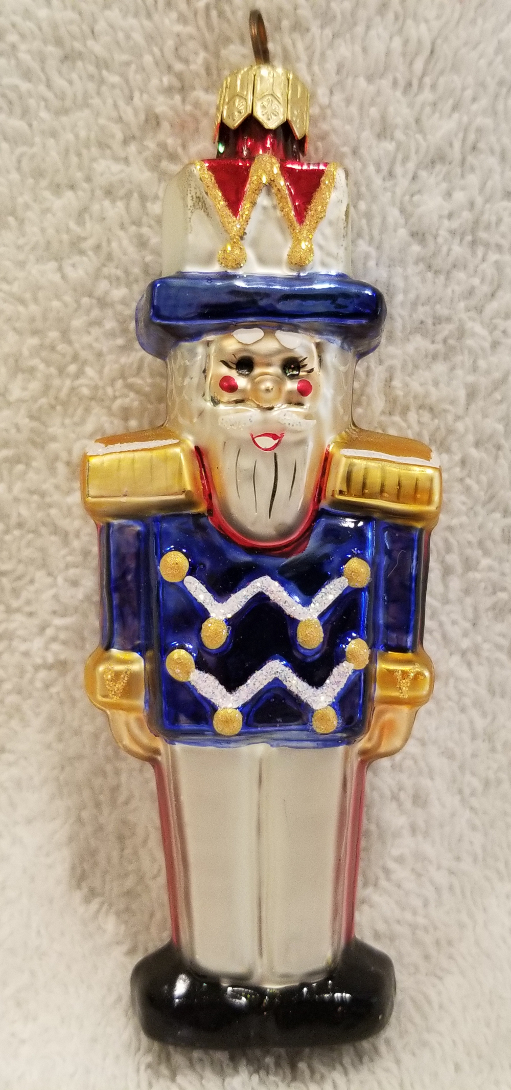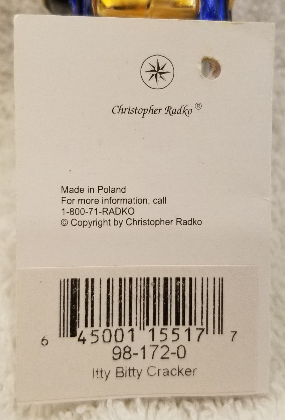 | I'm listing another cute one. This is Itty Bitty Cracker, Radko number 98-172-0. This is Uncle Sam Santa, dressed in red, white, and blue in Radko's classic nutcracker style. The original paper tag is included. I'm asking only $25 plus shipping via Pirate Ship. |