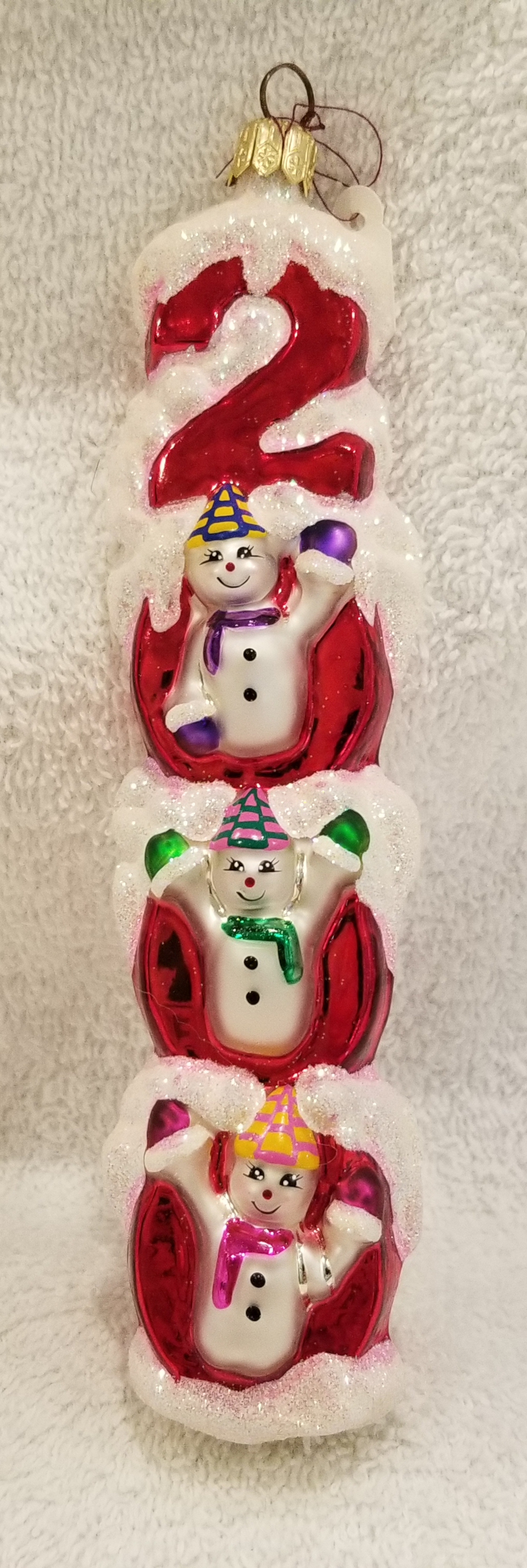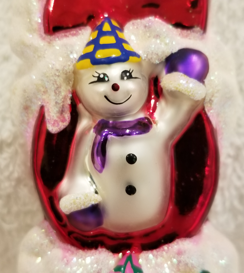 | Today I'm listing a cute Year 2000 ornament. This is Millennium Magic, Radko number 99-310-0. This is a stack of the numbers 2000 with 3 little snowmen hiding inside. The original paper tag is included. I'm asking $30 plus shipping via Pirate Ship. |