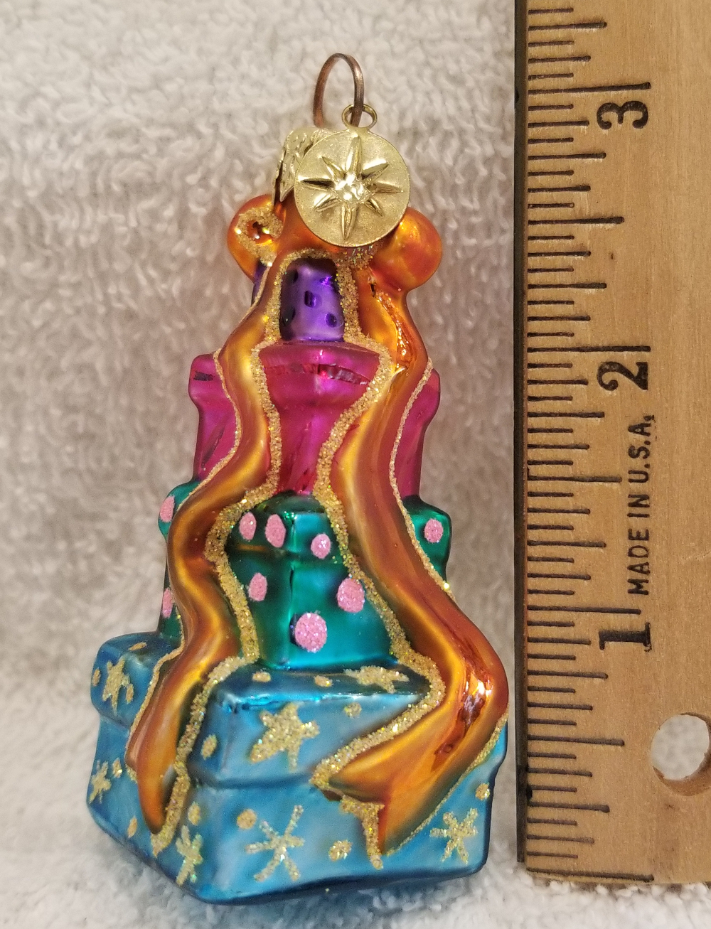 | Today I am offering Radko number 01-0733 Shoping Spree Litle Gem. This cute stack of gifts surrounded by a beautiful gold ribbon is approx. 3" tall. This ornament has the original Radko metal tag. I'm asking only $30 plus shipping via pirate ship. Please ask if there are any questions and thanks for taking a look! |