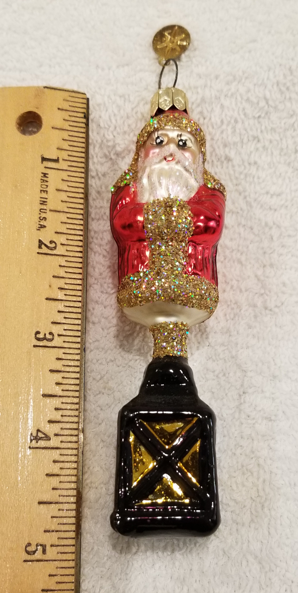| I'm listing a very unique one. This is Light of Cheer, Radko number 01-1037-0. From 2001, this is Santa dressed in red robes with gold glitter accents perched on top of a black and gold street lamp. The original metal charm is still attached and the paper tag is available. I'm asking only $25 plus shipping via Pirate Ship. |
