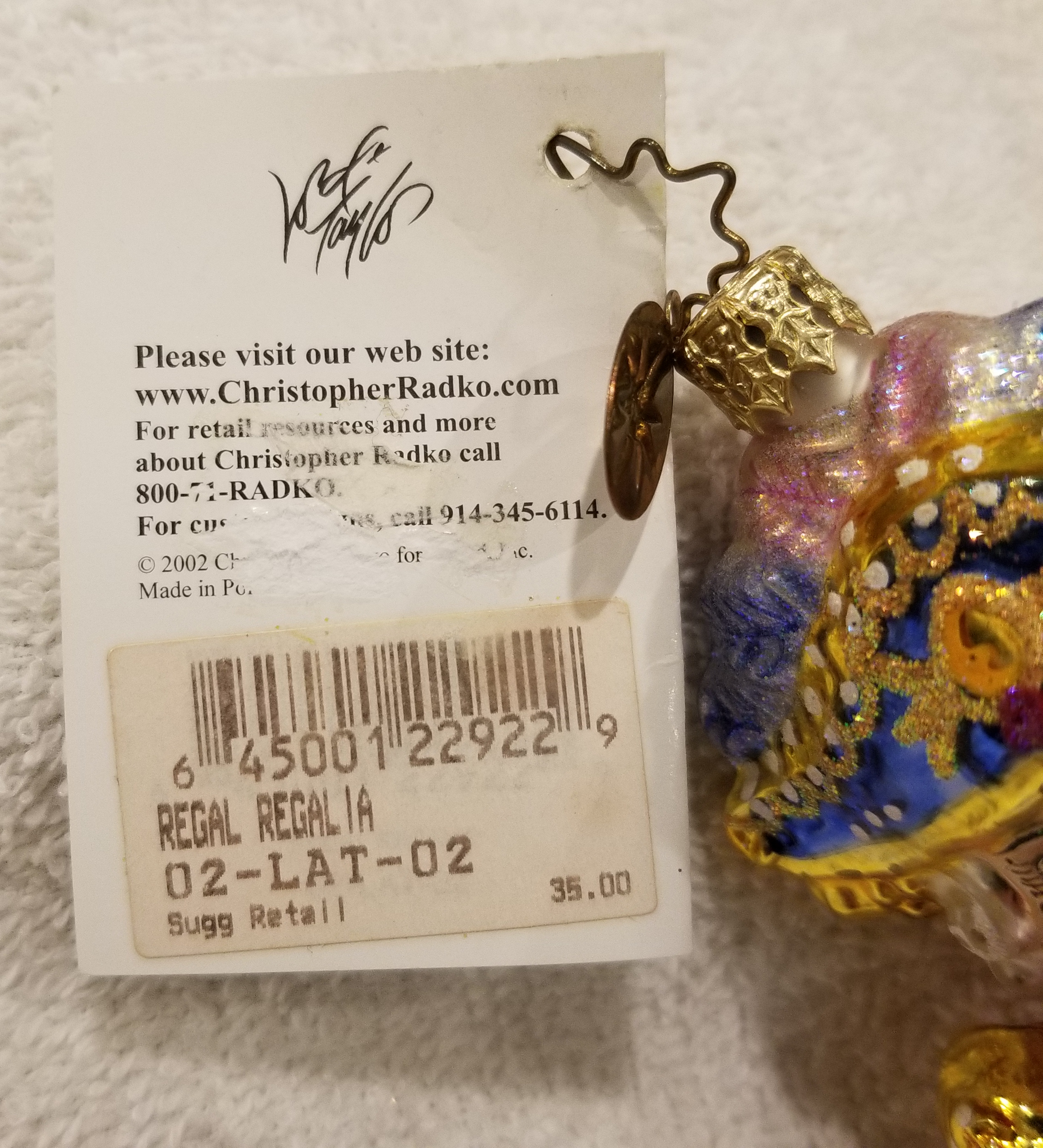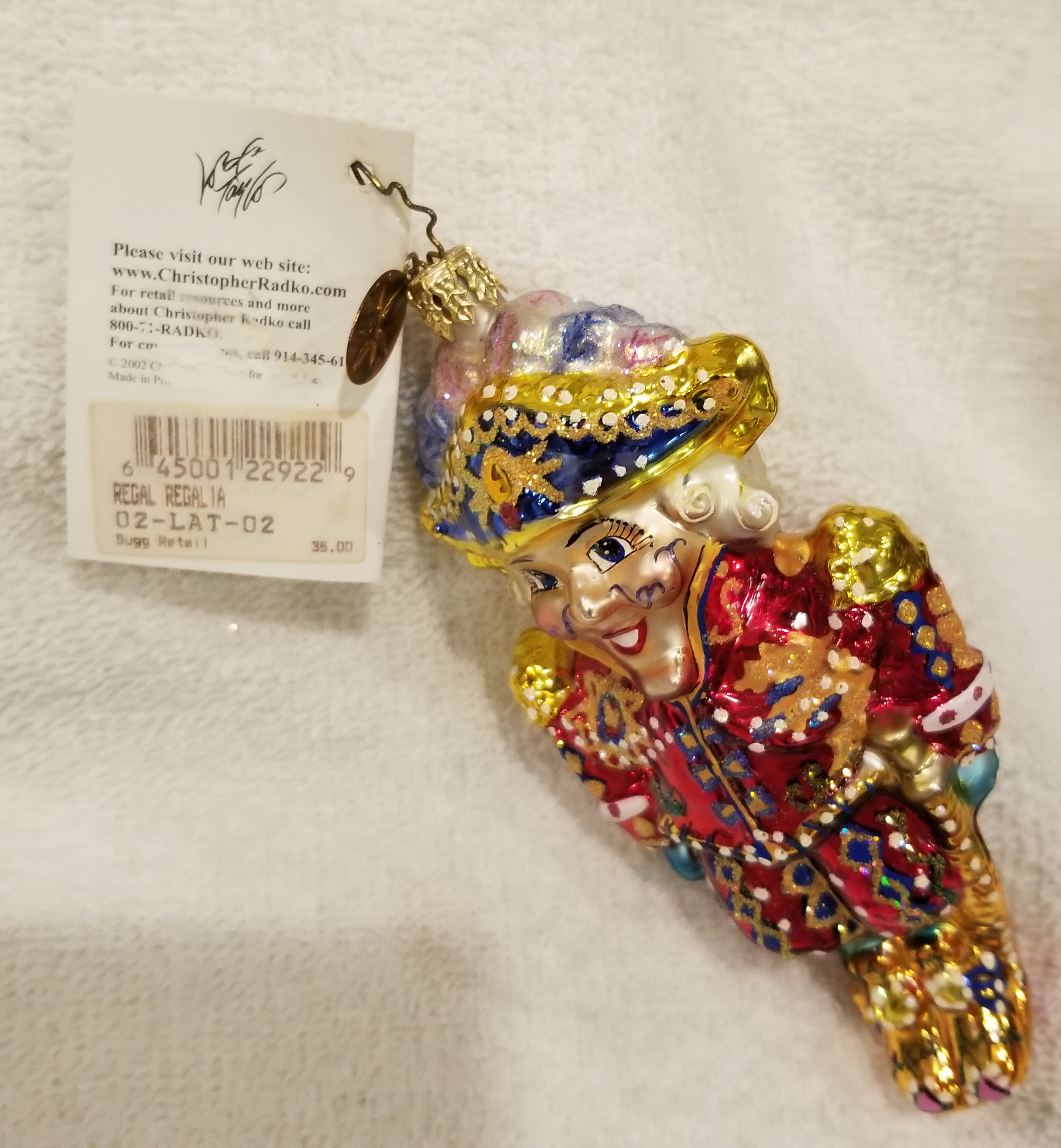 | Today I'm listing another unique one! This one is Regal Regalia, Radko number 02-LAT-02. This is a well-dressed soldier dressed in his finest regalia. He stands approx. 5" tall I hope my pictures do this one justice! The original metal charm and paper tag are still attached. I'm asking $50 plus shipping via Pirate Ship however you prefer. Please ask if there are any questions and thanks for taking a look! |