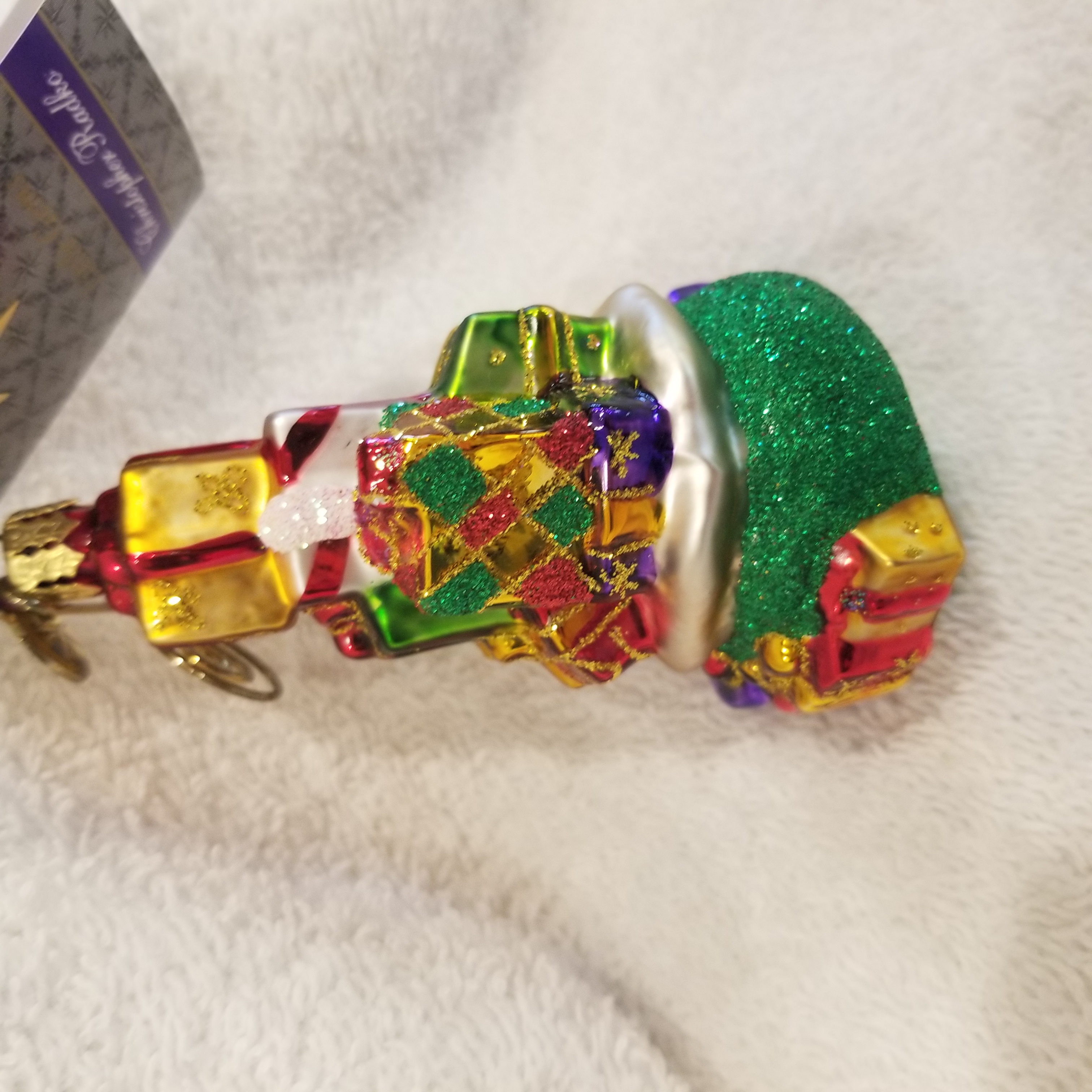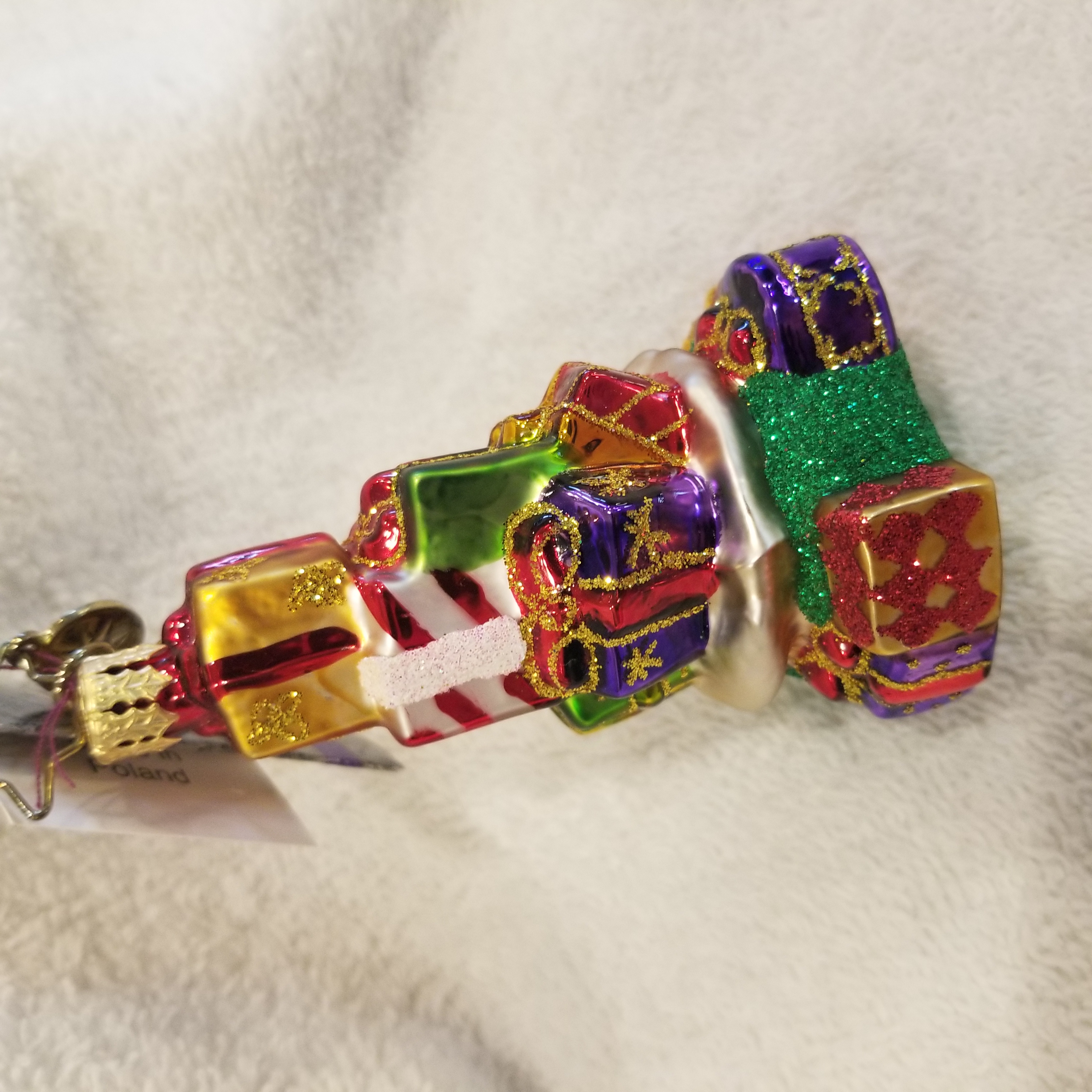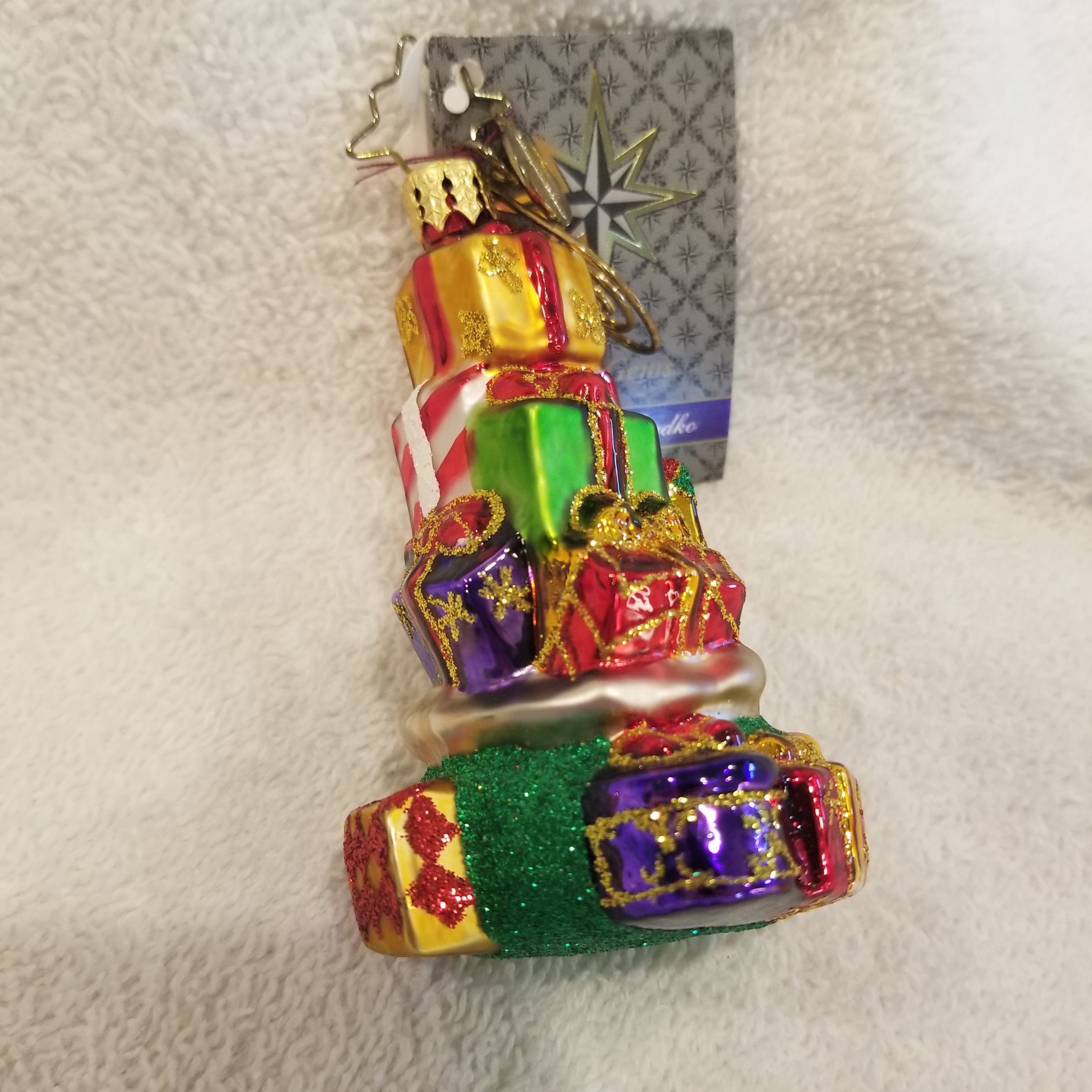 | Today I'm listing Radko number 1016208 Bag of Joy Gem. This is a 3" stack of beautiful Christmas gifts. Both paper tags are still attached as is the usual metal radko tag. Be sure to take a look at the video! Also comes in a Radko box. I'm asking $35 for this ornament plus shipping via pirate ship however you'd like. Thanks for taking a look! |