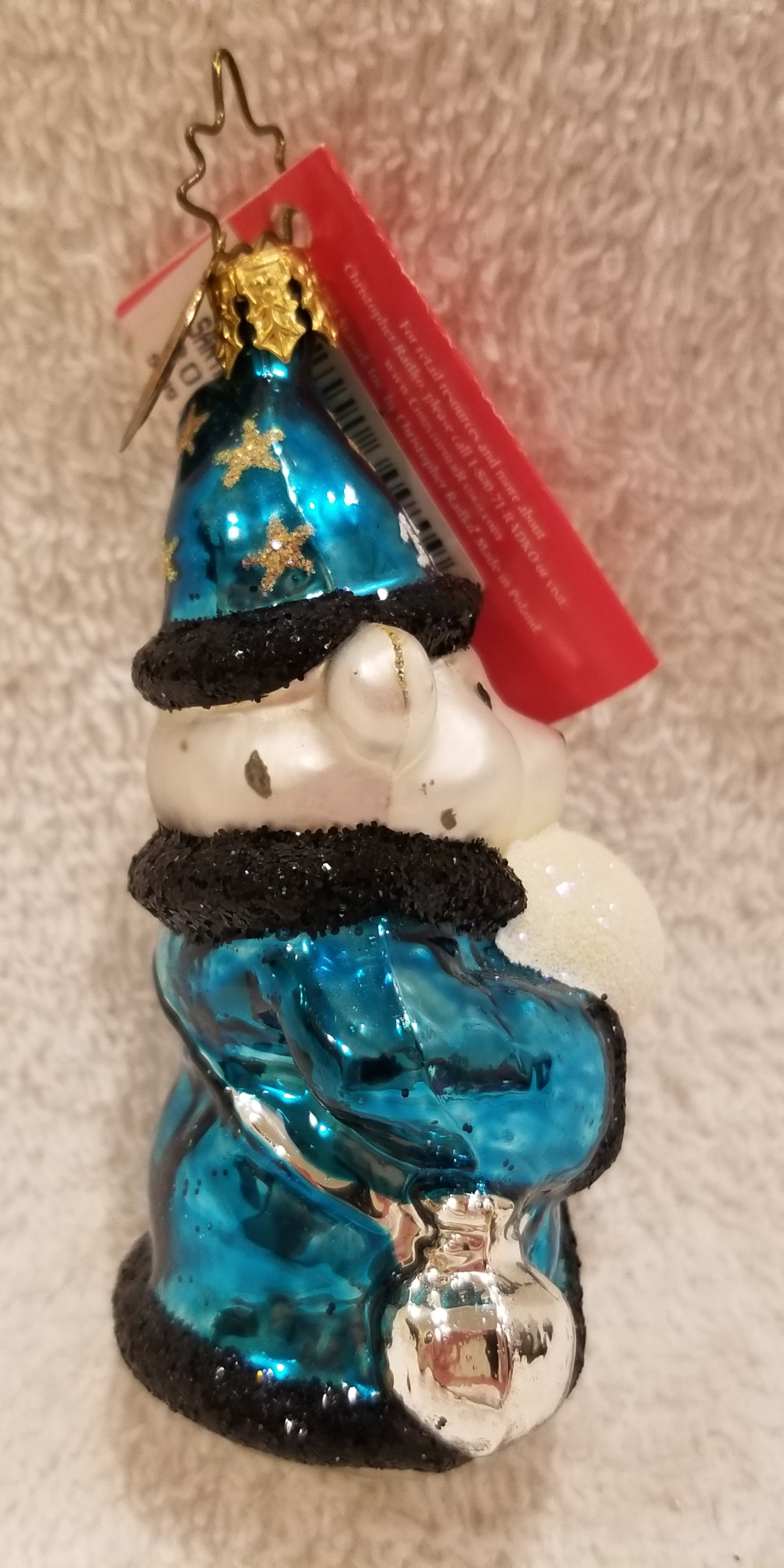 | Today I'm listing another cute Santa Bear. This is Santa Bear Gem 1999, "Wizard Magic". Radko number 3010698. This year is a polar bear wizard in beautiful blue robes carrying a white orb. The original metal charm and the paper tag are included. I'm asking $30 plus shipping via Pirate Ship. |